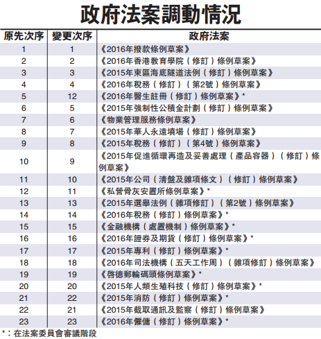 林郑月娥说,“泛民”认为关于改革医务委员会和引入海外医生的《2016年医生注册(修订)条例草案》极具争议性,但没有要求撤回。政府考虑政策立场后,决定将草案放在议程的中间位置,待草案在法案委员会审议完毕后提交回立法会大会。此外,反对派和建制派对有关警务处更新电脑系统的拨款申请意见分歧。据了解,有关项目安排在4月22日的财委会议程第四项。