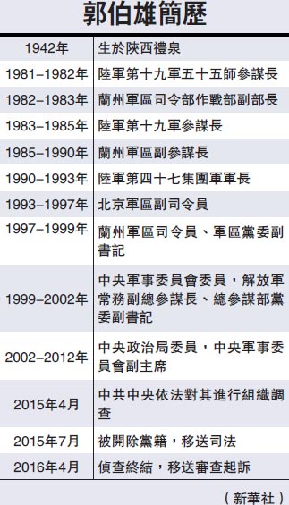 郭伯雄涉受贿卖官移送法办 调查耗时2倍于徐才厚