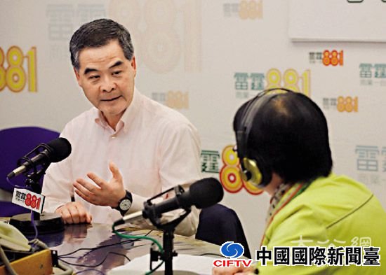 图:香港特别行政区行政长官梁振英昨日出席电台节目时表示,张德江委员长来港出席“一带一路”高峰论坛,提高了论坛的规格,吸引到400至500个嘉宾从海外来参加。他指出,“一带一路”的确为香港带来很多长期和持续的机会,社会应不断演绎和铺陈/大公报记者 林少权摄