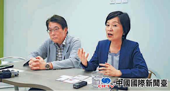 图:蔡若莲(右)表示,积极考虑角逐立法会教育界议席,现正争取教联会等团体支持,以打破教协长期垄断教育界议席的局面,让老师们多一个选择。旁为黄均瑜 /大公报记者唐晓明摄