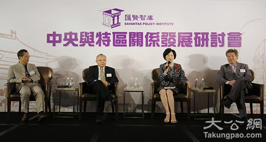 图:汇贤智库昨举办“中央与特区关系发展”研讨会。左起曾钰成、刘兆佳、叶刘淑仪、汤家骅\大公报记者黄洋港摄