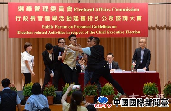“热狗”冲击特首选举咨询会 扰攘45分钟遭驱离