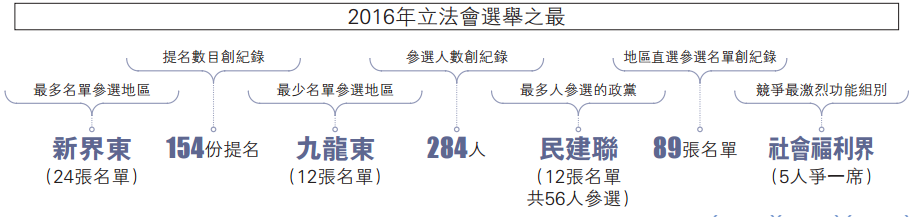 中国国际新闻台(www.ciftv.com)据大公网7月30日讯(记者朱晋科)为期两周的立法会选举提名期昨日结束,选举事务处接获154份提名表格,创下回归以来新纪录。其中五区直选共有89张名单,总参选名单数及每区参选名单数均打破历史纪录。新界东选区竞争最为激烈,24张名单争夺九席,平均2.6张名单争一席;港岛区今届减少一席至六席,仍有16张名单“混战”,同样是2.6张名单争一席。众所瞩目的“超级区议会”界别,今年亦出现九张名单竞逐五席的激烈竞争场面。