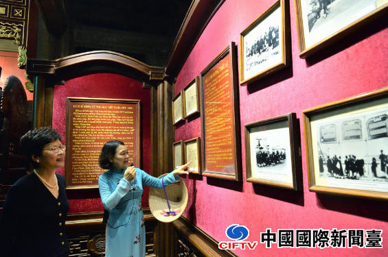 图:林郑月娥在越南河内参观文庙,了解更多越南保存历史文物建筑工作