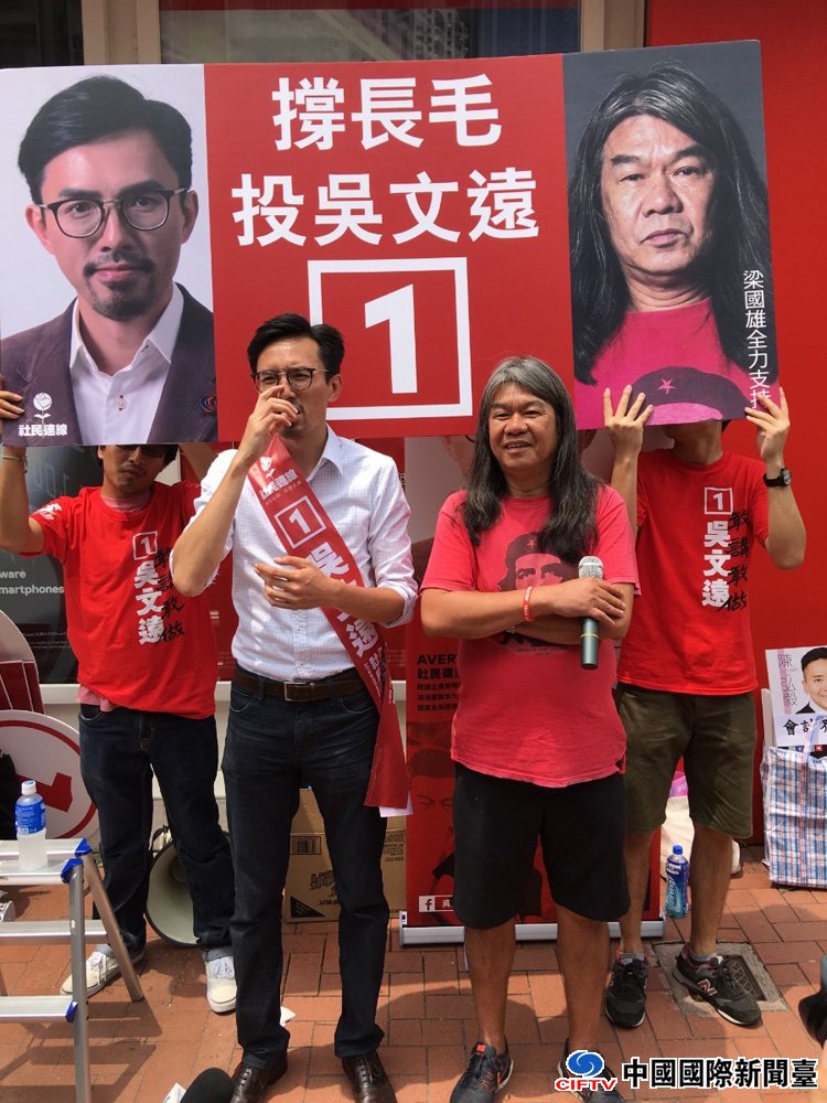 图:梁国雄(右)批评“雷动”是样本不足的民调