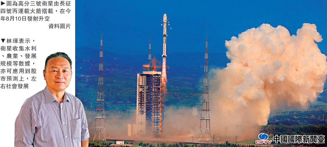 林珲续称,卫星收集的水利、农业、城市人口、发展规模等数据,亦可应用到股市预测上,左右社会发展。“去年‘吉林一号’卫星升空,更标志着卫星技术已拓展至中国民营企业,当中有很大的经济潜力。”