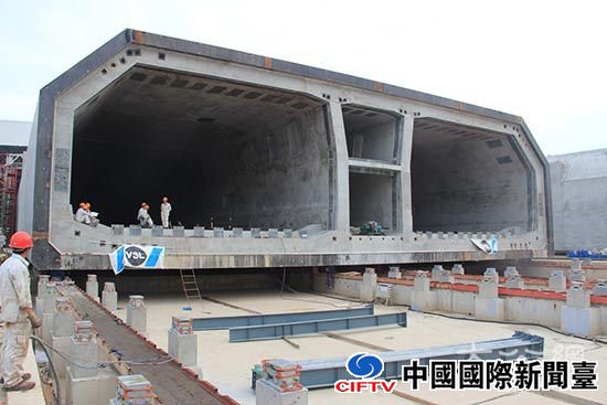 图:港珠澳大桥每节沉管长180米左右,造价超一亿元人民币,图为沉管预制现场\大公报记者方俊明摄
