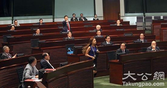图:游蕙祯甫“杀入”会议厅即跑往主席台方向\大公报记者黄洋港摄
