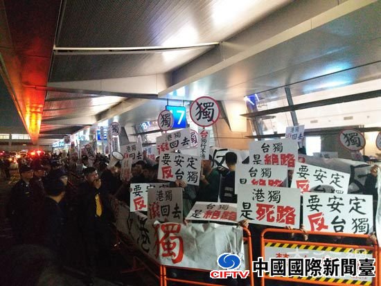 当罗冠聪及黄之锋等人今日凌晨抵达台北机场时,当地有近千名民众高举“港独是死路”、“台独是绝路”等标语牌在场抗议。大公报记者摄