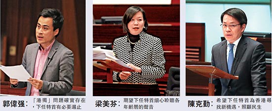 大公网1月13日讯(记者龚学鸣)立法会大会昨日复会,讨论由工联会郭伟强提出对下任行政长官的期望的无约束力议案。有议员希望下任特首为香港寻找新机遇,照顾民生;亦有议员期望下任特首面对政治问题要放下身段,细心聆听各个年龄层的声音。但反对派只顾就议案批评政府,没有任何建设性意见。而在反对派阻挠下,议案及所有修正案最后均不获通过。郭伟强在总结发言时感谢建制派议员的建议,批评反对派的修正案删去维护国家主权的字眼,发言只懂批评现有政制。