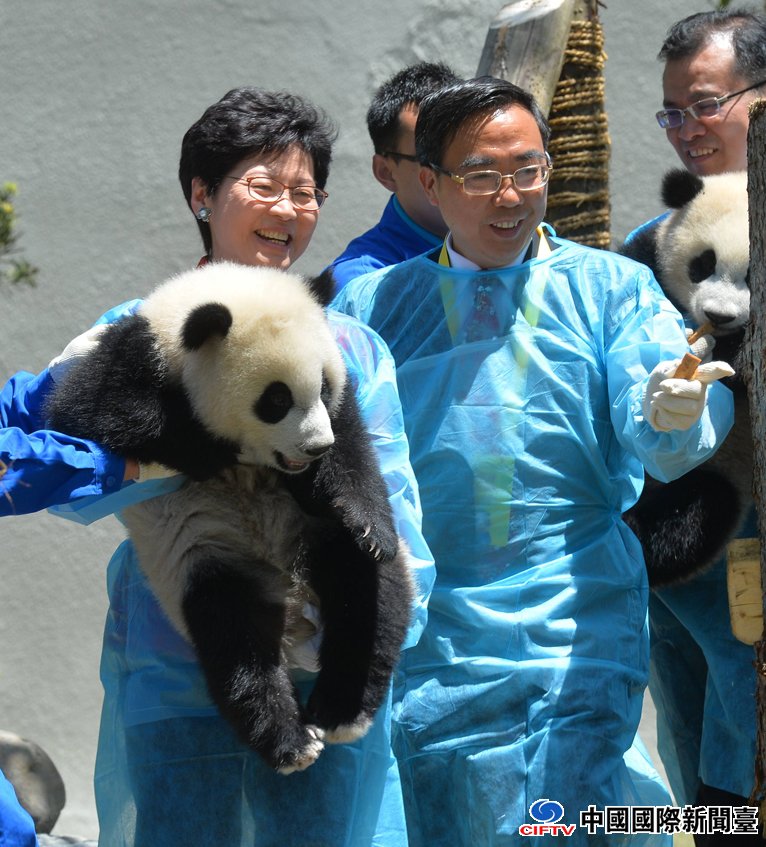 图:林郑月娥(左)去年五月参观中华大熊猫苑