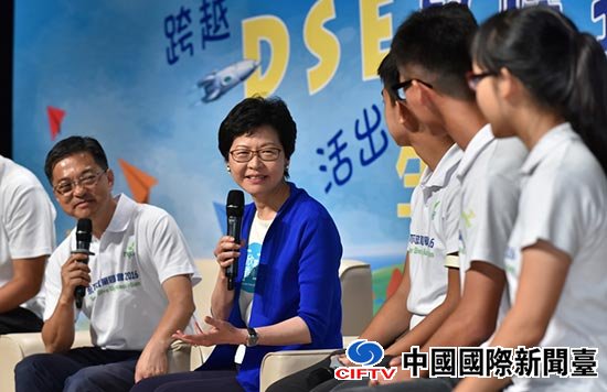 图:林郑月娥去年七月出席DSE放榜打气大会,和同学们分享面对放榜的心情及经验/资料图片