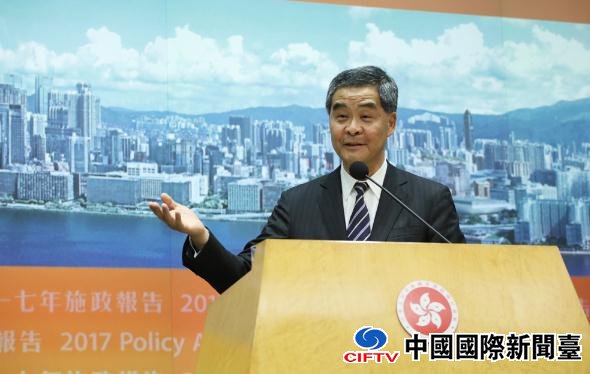 图:梁振英最后一份施政报告迎难而上,直面退保及取消对冲等“老大难”问题/大公报记者蔡文豪摄