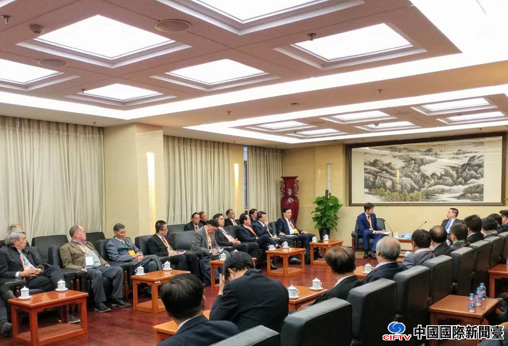 港澳办副主任黄柳权昨天在京会晤本港渔农界访京团 大公报记者 马静摄
