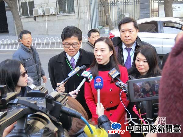 香港中律协创会会长陈曼琪(中间红衣者)接受传媒访问。 大公网记者李九歌 摄