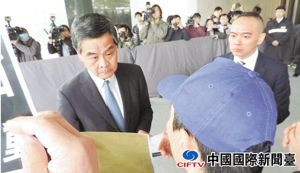中国国际新闻台(www.ciftv.com)据大公网3月1日讯(记者 殷翔)民间团体“保卫香港”昨晨到特首办向行政长官梁振英请愿,要求特赦“七警案”中各被告。他们认为该案存在明显不公,“佔中”及“旺角暴动”中的肇事者罪行严重得多全获轻判,七警犯下情有可原的轻微过错却被重判。梁振英亲自接收了请愿信。