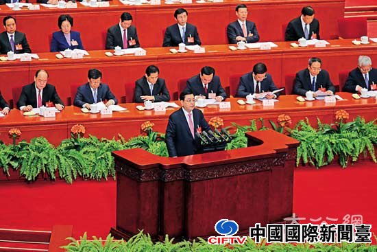 图:张德江作全国人民代表大会常务委员会工作报告\大公报记者何嘉骏摄
