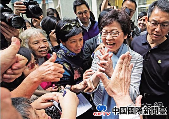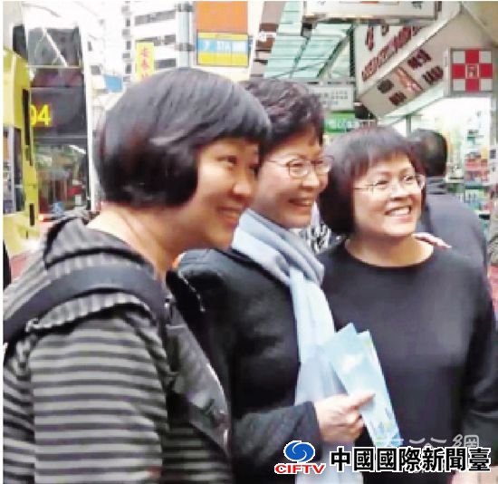 林郑月娥在三个候选人中的民意支持度领先。林郑月娥落区时,市民纷为她打气