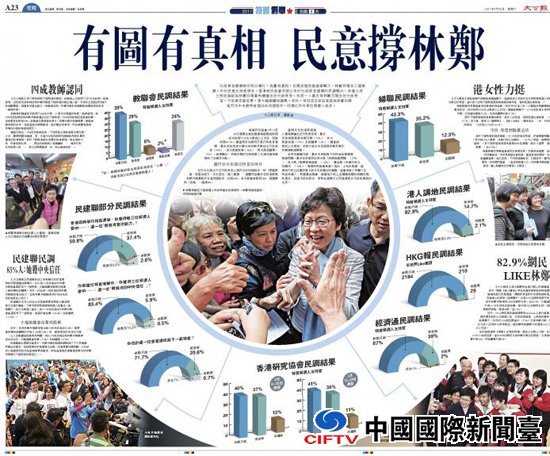 行政长官选举将于明日举行,有图有真相,近期多个民意调查显示,林郑月娥在三个候选人中的民意支持度领先。香港研究协会早前公布的行政长官选举的民调显示,多达七成三受访者认为林郑月娥最有机会出任行政长官。四成一人最支持林郑月娥出任行政长官,不但领先曾俊华,更大幅抛离胡国兴。另外,有四成五受访者认为林郑月娥能符合中央对特首提出的四个条件,同样比另外两位候选人为多。