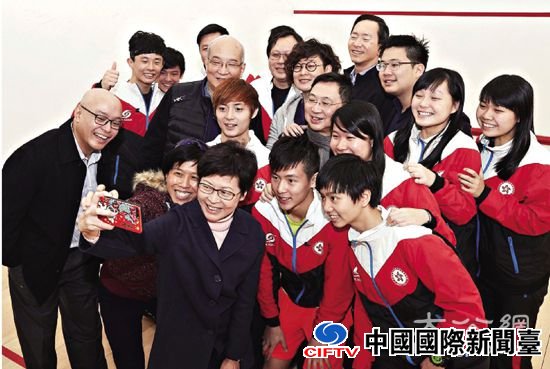 林郑与一众年轻运动员合照,并聆听他们诉求