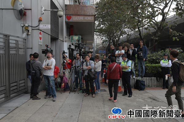 大批媒体在中联办大楼外等候。大公文汇全媒体记者麦钧杰摄